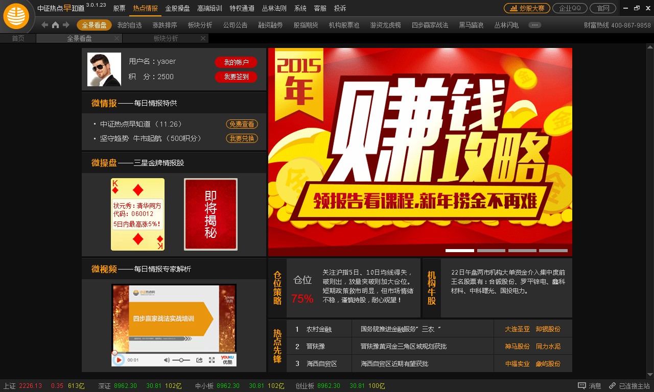 投顾客户,定制PC行情客户端项目。以热点资讯,特色指标为卖点。